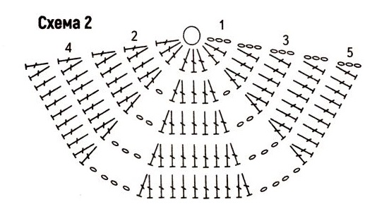 Для формирования скоса рукава и горловины используйте половину основного мотива.