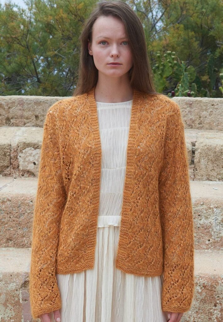 пряжа 2- AUSTERMANN “Kid Silk” (75% мохера, 25% шелка; 225 м/25 г) — 125 (150) 175 г цв. карри Curry (Fb 26); спицы № 4 и 4,5.