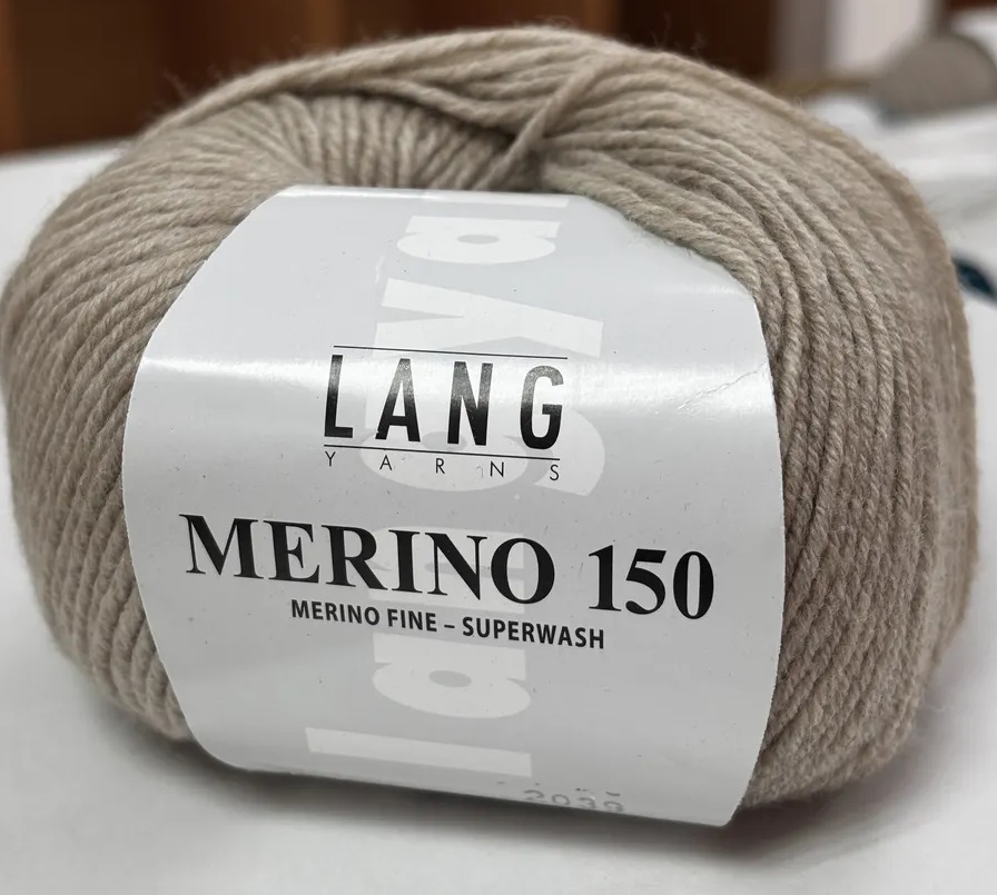 400 (450) 500 г пряжи типы “Merino 150” от LANG YARNS бежевого цвета (Fb 0226) (100% шерсть Merino, 150 м/50 г); прямые спицы №3 и 3,5, а также круговые спицы №3.