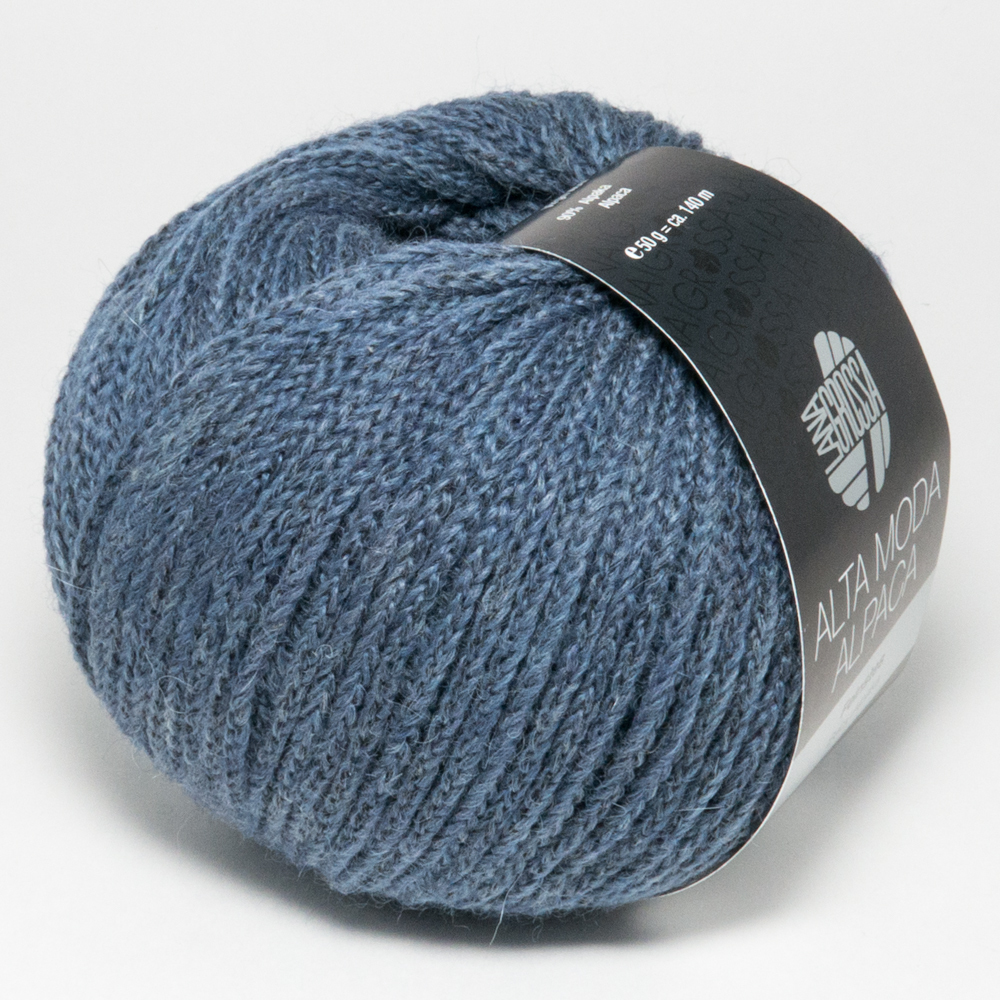 Для вязания нам потребуется 350 (400) 450 г джинсовой (цвет № 60) пряжи LANA GROSSA “Alta Moda Alpaca”: 90% шерсть альпака, 5% натуральная шерсть, 5% полиамид; 140 м/50 г.