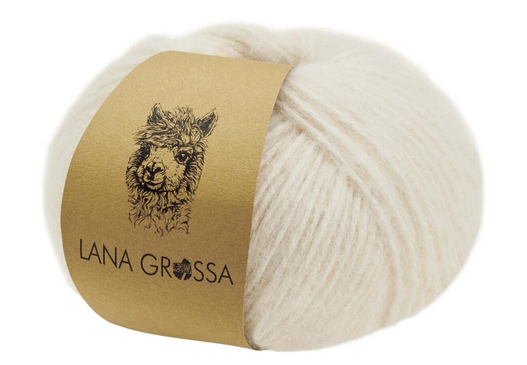 You will need: 500 (550/600/650) г белой суровой (цв. 01) пряжи Natural Alpaca Pelo (63% хлопка, 31% альпака бэби, 6% шерсти мерино, 125 м/50 г) фирмы Lana Grossa; круговые спицы № 3,5 и № 5,5 длиной 80–100 см; 3 пуговицы диаметром 28 мм.