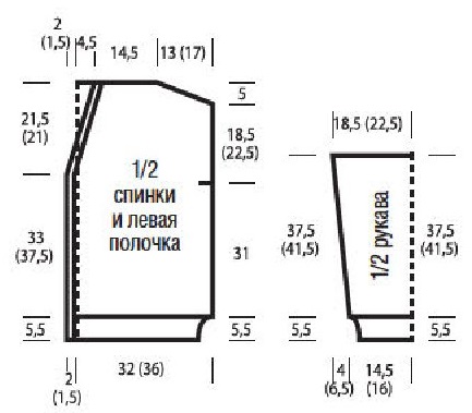 С левого края= вязать согл. узору до последних 37 п., затем 2 п. провязать вместе изнаночной, оставшиеся петли провязать согл. узору.