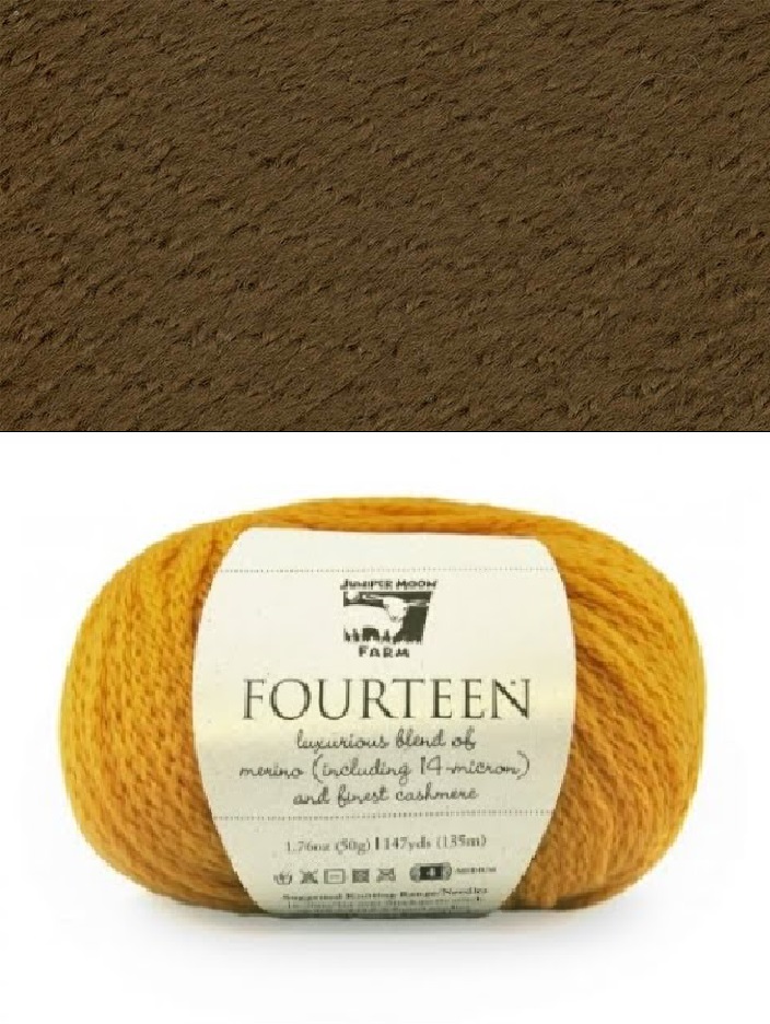 You will need: пряжа JUNIPER MOON FARM “Fourteen”(90% овечьей шерсти, 10% кашмирской шерсти; 135 м/50 г) — 800 (850) 900 г коричневой Mocha (Fb 21) ; спицы № 4,5; 2 чулочные спицы № 4,5.