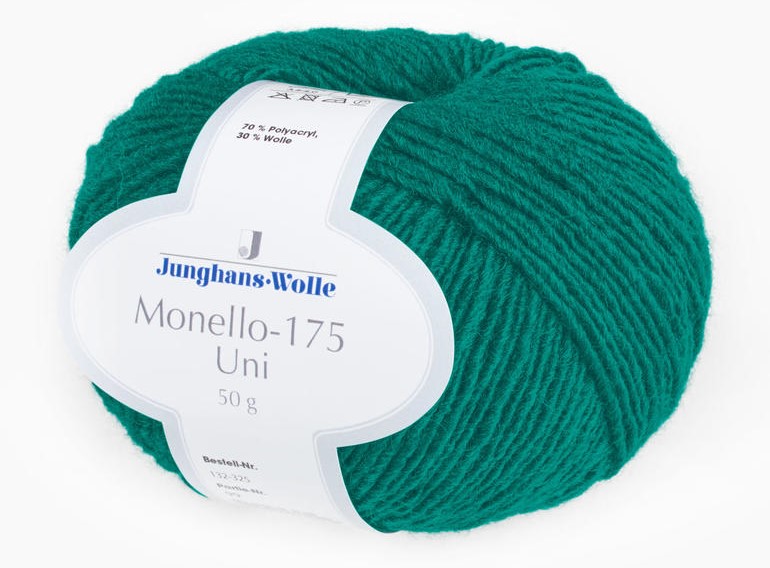 пряжа 2 – JUNGHANS-WOLLVERSAND “Monello” (70% полиакрила, 30% шерсти; 175 м/50 г) — 250 г изумрудной; спицы № 6; крючок № 5;