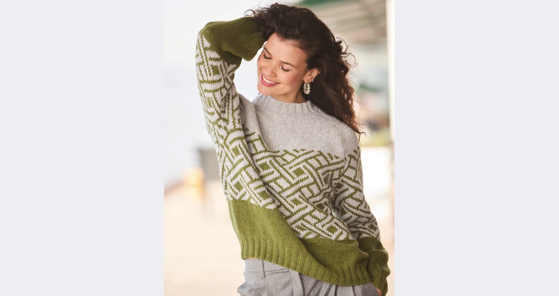 Вещь с характером: этот пуловер реглан впечатляет четкостью линий и цветовым контрастом. Оливковый и светло-серый эффектно дополняют друг друга, переплетаясь посередине в искусно выполненном норвежском узоре, который придает дизайну глубину и выразительность. Актуально, непринужденно, удобно!