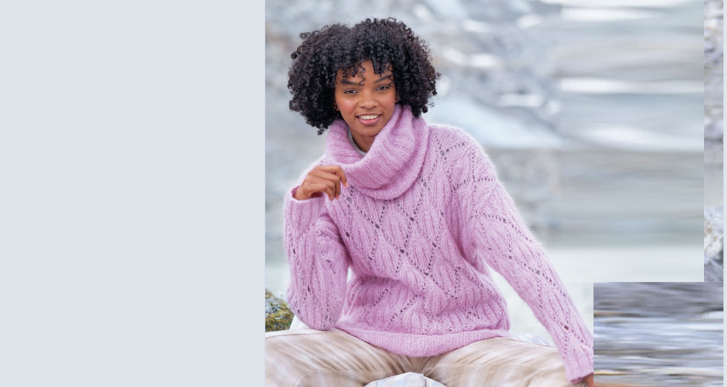 Нежный пастельный оттенок и уютная фактура: наш пуловер окутает вас теплом и очарует тихой красотой. Он вяжется в две нити из мягкой шерстяной пряжи с мохером.