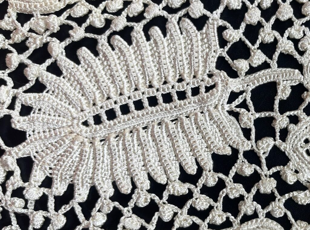 Чаще всего бурдон используется в ирландском кружеве для вывязывания объемных деталей таких, как листики, цветы, крепления для шнуровки.