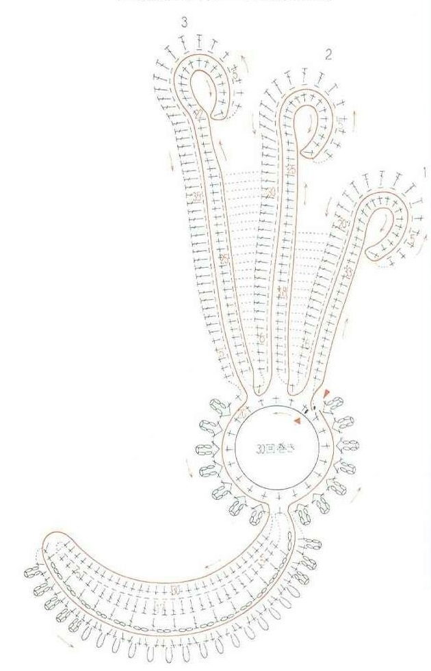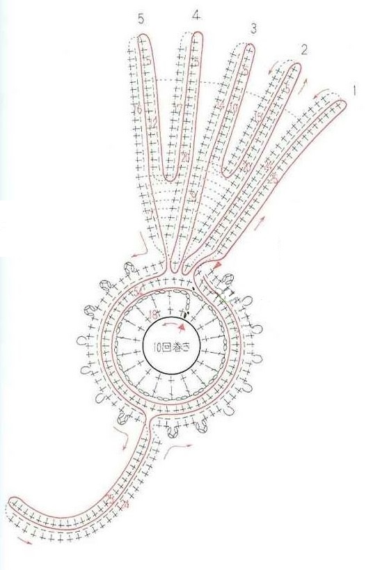 Для этого цепочка из воздушных петель заменяется 3 — 4 нитями сложенными вместе из необходимой пряжи. Сложенные вместе нити образовывают основу для вязания и называются бурдоном.