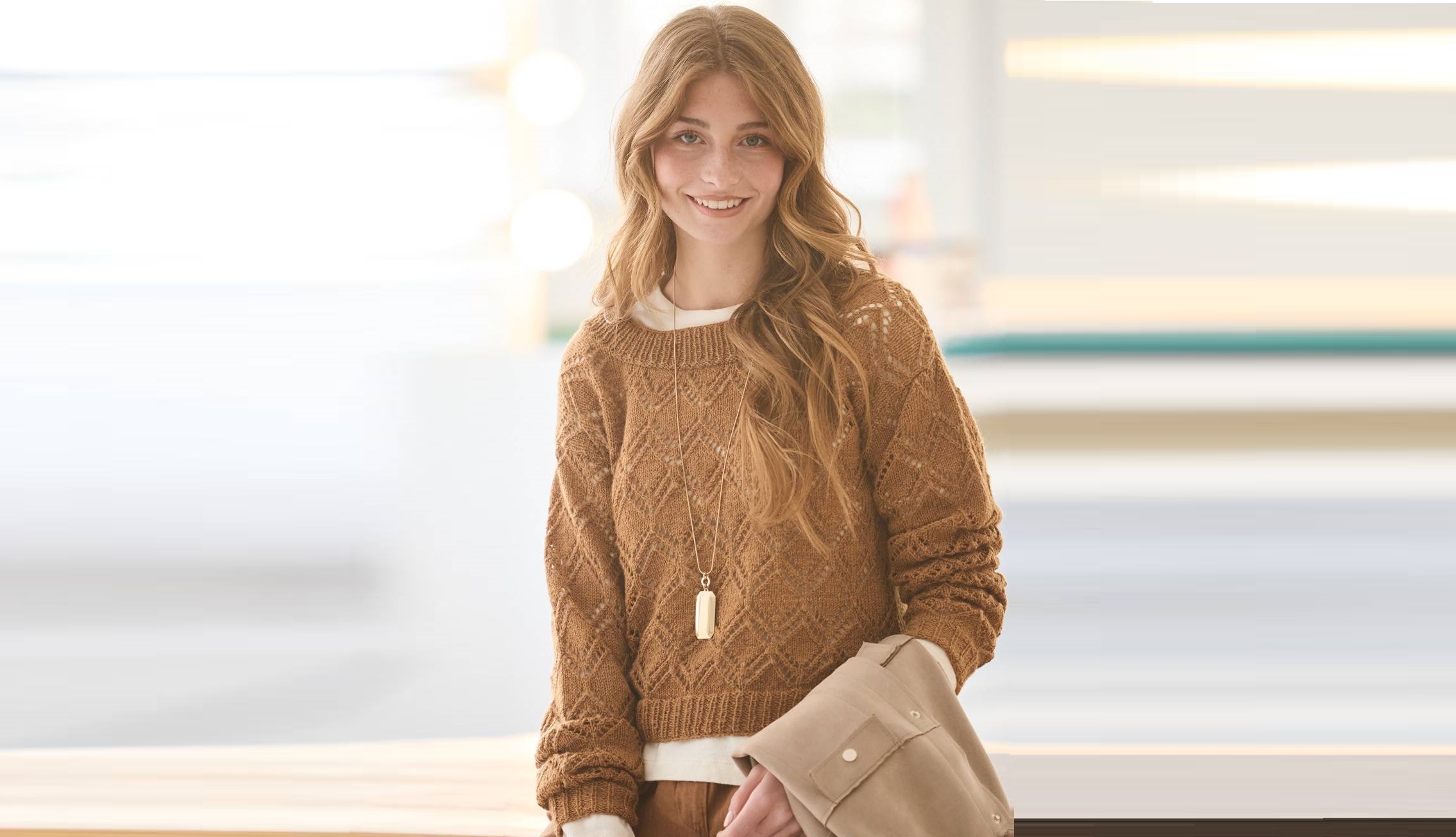 Вязаный пуловер сочетает в себе традици и модные веяния. Сплошной ажурный узор в виде ромбов настолько деликатен, что не противоречит офисному дресс-коду, а удлиненные рукава с приспущенными проймами вносят актуальную ноту.
