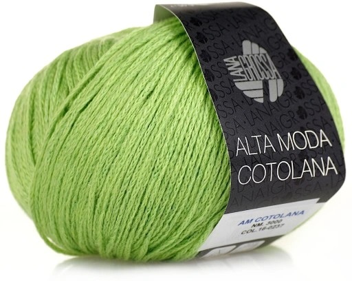 Вам потребуется: пряжа LANA GROSSA “Alta Moda Cotolana”(45% шерсти, 45% хлопка, 10% полиамида; 150 м/50 г) — 550 (600) 650 г светло-зеленой (цвет № 10) ; спицы № 4 и № 5; круговые спицы № 4; крючок для вязания № 4.