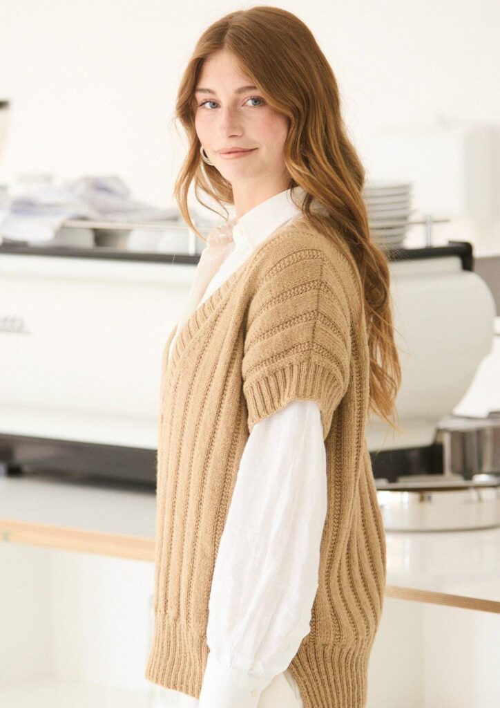 Расслабленно и в то же время элегантно — именно так вы будете ощущать себя в жилете оверсайз с глубокой V-образной горловиной и разрезами по бокам. Вещь поистине универсальная: ее можно комбинировать с блузкой, водолазкой или носить отдельно в последние теплые дни.