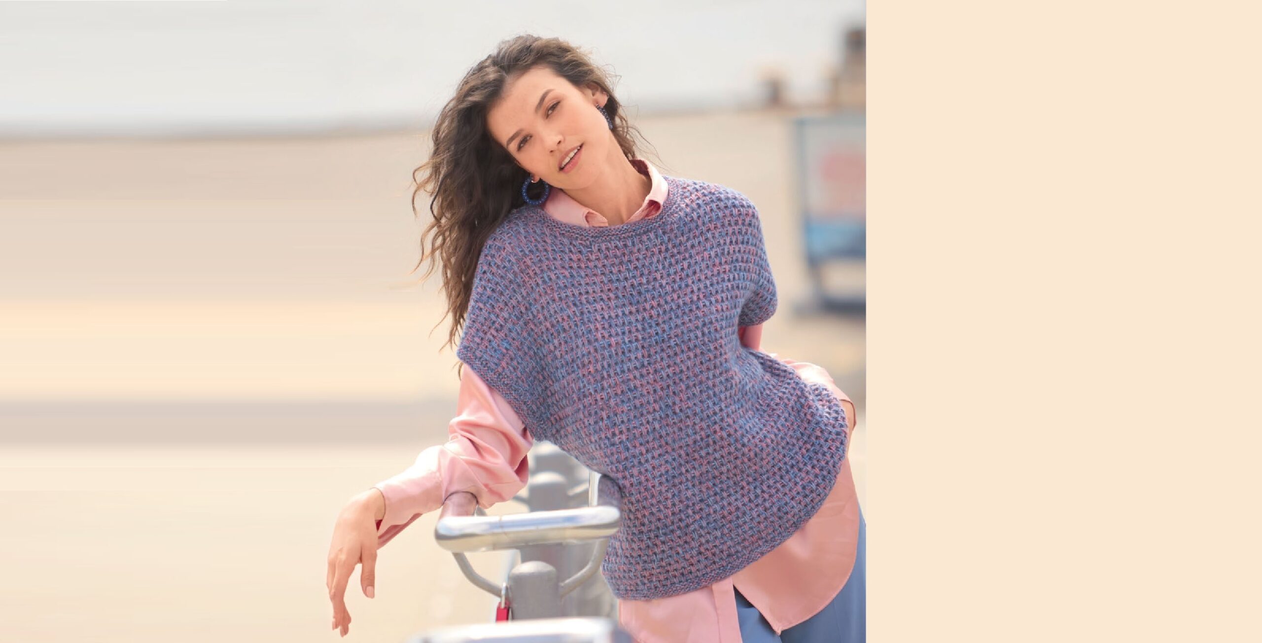 пряжа 2 – LANGYARNS “Cashmere Dreams” (65% кашемира, 35% шелка; 290 м/25 г) — по 75 (100) г голубой Hellblau (Fb 0021) и джинсово-голубой Jeans (Fb 0034); спицы № 5 и 5,5; круговые спицы N° 5.