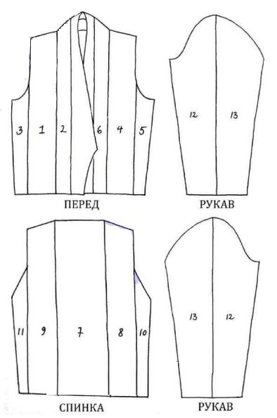 Каждый рукав состоит из 2-х деталей (12 и 13).