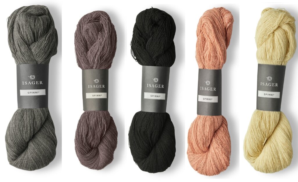 >> Isager Spinni (100% шерсть; 311 м/ 50 г) – по 1 мотку каждого цвета 23s, 60, 58, 30 и 39s