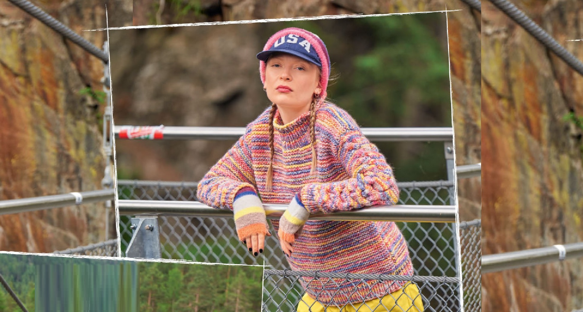 Когда нитки настолько красочны, можно отказаться от сложных узоров и выбрать обычную платочную вязку с резинкой по краям. В нашем случае мы лишь украсили рукава широкими «косами» по всей длине просто восхитительно!