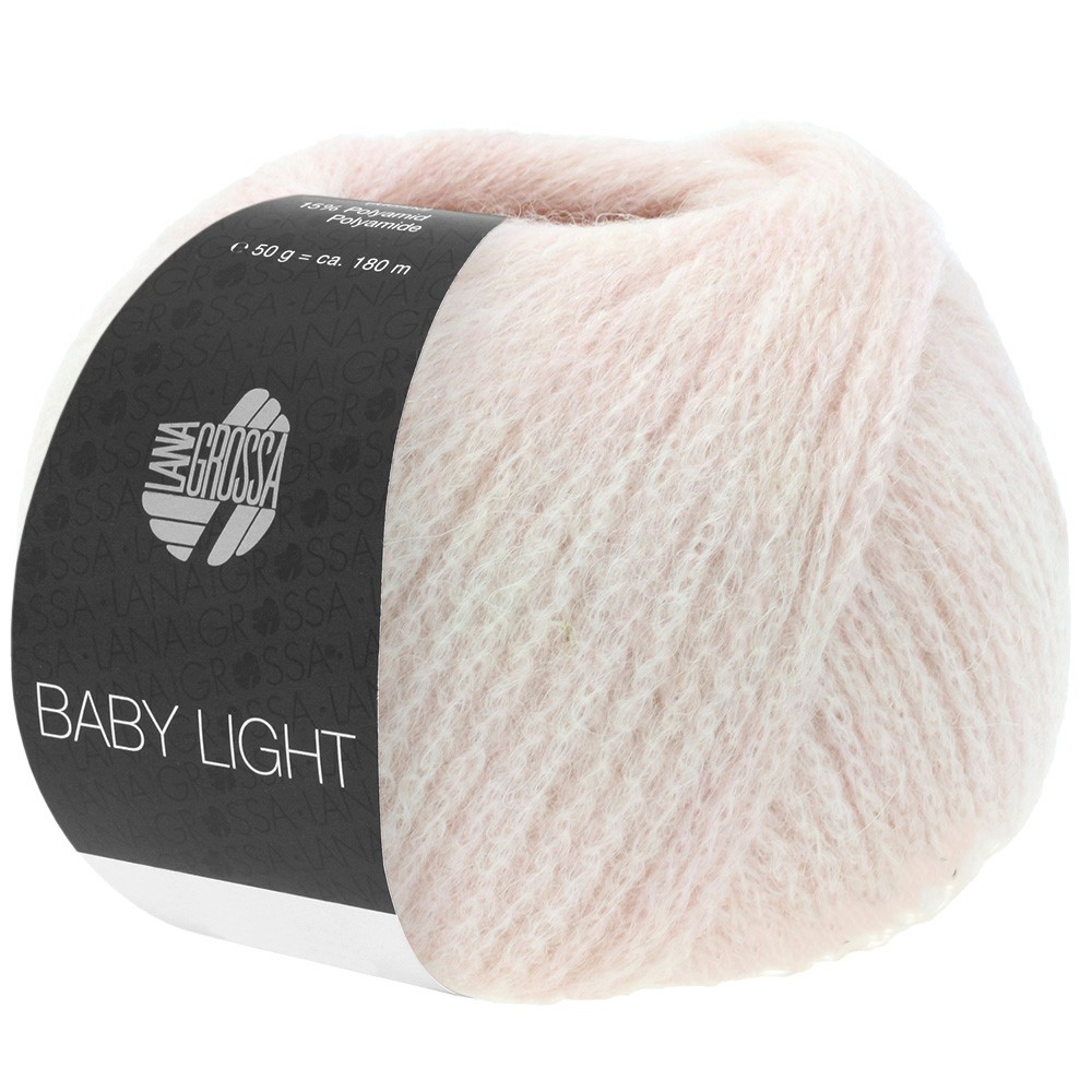 Для вязания нам потребуется 400 (450) 500 г светло-розовой (цвет № 19) пряжи 1 LANA GROSSA “Baby Light”: 62% шерсть альпака, 23% овечья шерсть, 15% полиамид; 180 м/50 г.