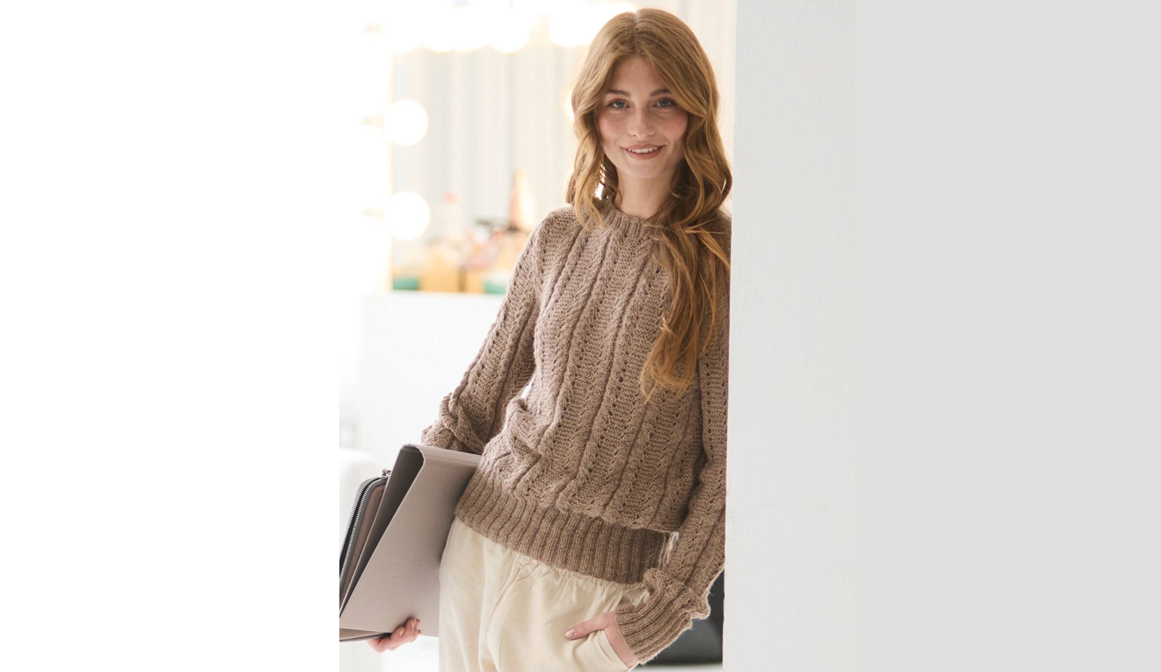 Удивительно приятный пуловер! Он декорирован скромным ажурным узором и нежно ласкает кожу благодаря супермягкой пряже, на сто процентов состоящей из шерсти ламы.