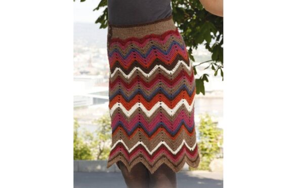 Интересная юбка, вязаная крючком разноцветными зигзагами, от студии Дропс Дизайн. Подберите цвета по своему вкусу и начинайте вязание.