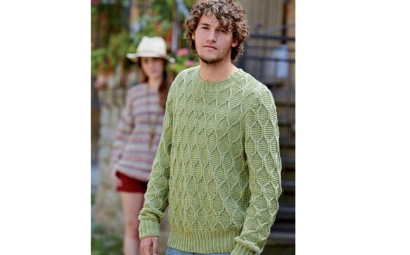 Мужской свитер спицами с узором соты
