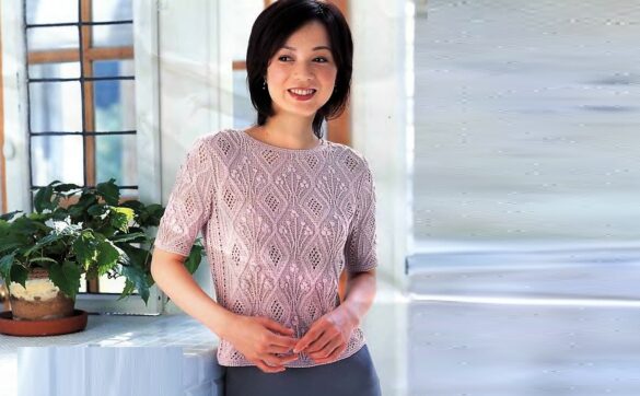 Мягкая и легкая, как весеннее облако, вязаная блуза Sally. Нежный ажурный узор на вырезе один из самых простых, но он всегда выглядит элегантно и женственно.