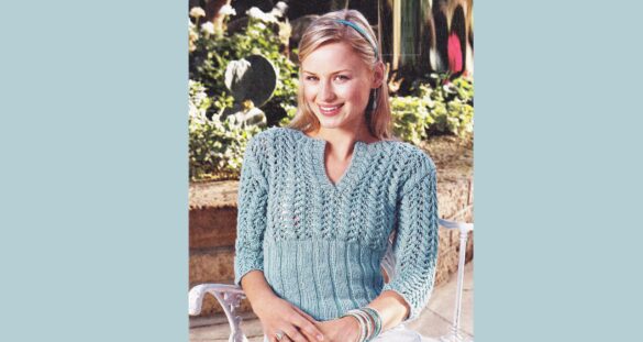 Элегантный топ с нестандартно включённым в него ажурным рисунком разработан в студии DROPS Design.
