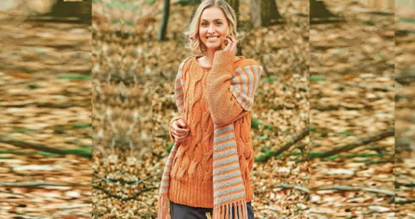 Диагональные полосы и поперечная резинка этого слегка небрежного пуловера не доставят особых хлопот. А связать уютный шарф-снуд смогут даже начинающие.