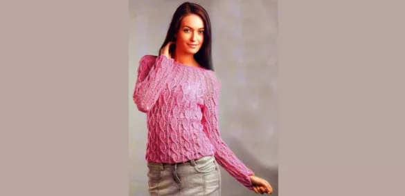 Изюминка этого вязаного пуловера прямого покроя — воздушная пряжа со сверкающими пайетками с необычной секционной окраской — пепельно-розовый тон, приятный сиреневый и нежный пудровый.