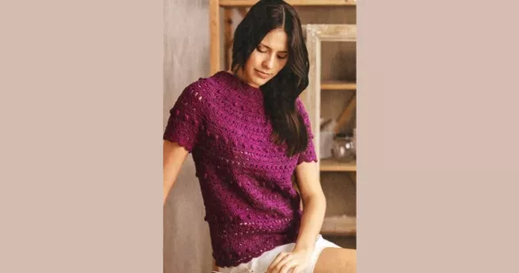 Короткая модель с эффектным ажурным узором и широким вырезом горловины. Универсальный пуловер дополнит и украсит любой образ.