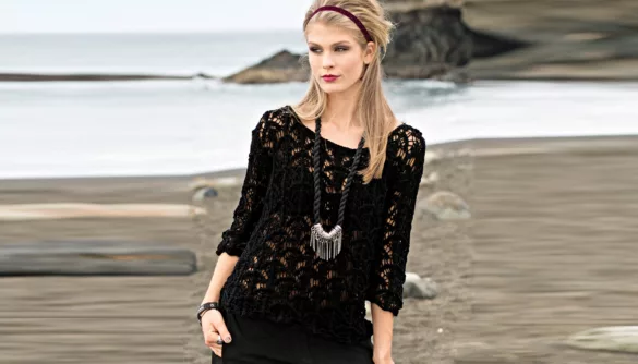 Ленточная пряжа из чистого шелка подчеркивает ажурные структуры непринужденного джемпера и гарантирует комфорт даже в жару.