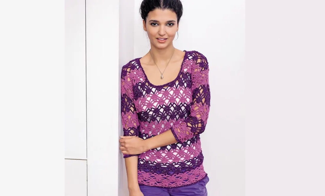 Легкий кружевной пуловер вяжется довольно просто, так что работа над ним под силу даже не очень опытным мастерицам.