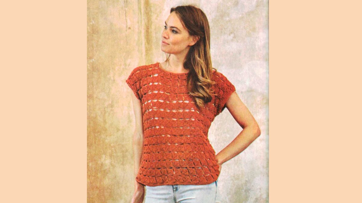 Ажурный топ терракотового цвета от Schachenmayr, связан крючком. Данная модель станет вашей любимой в летний период и никого не оставит равнодушным.