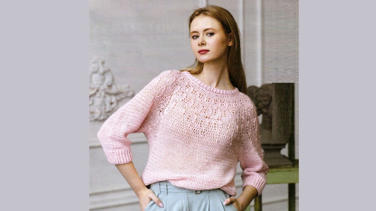 Вам потребуется: пряжа (100% акрил, 400 м/100 г) – 300 г розового цвета, тонкий люрекс, крючок №3,5.