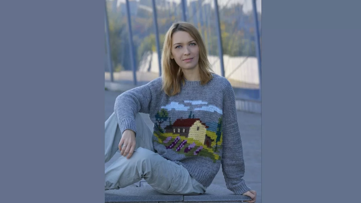 Маленький домик, окруженный деревьями и цветами, где-то на просторах Италии… Такой чудесный образ возникает у нас при взгляде на этот джемпер. А у вас?