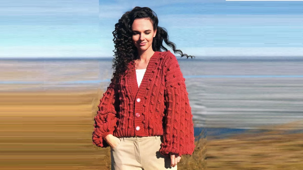 Объемные кардиганы – настоящий маст-хэв осенне-зимнего сезона. Обратите внимание на этот красный кардиган с рельефным узором. Такая вещь не надоест никогда!