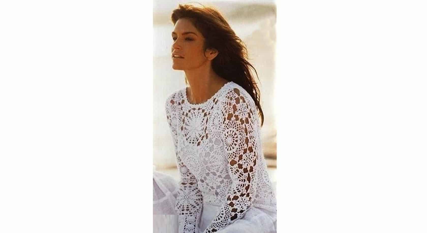 Белоснежные мотивы, больше похожие на невесомые снежинки, легли в основу ажурной кофточки с баской.