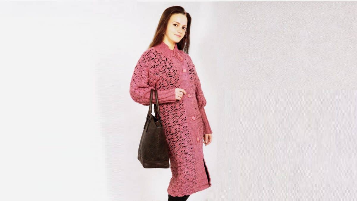 800 г темно-розовой пряжи (50% шерсть, 50% акрил, 100 г/280 м).