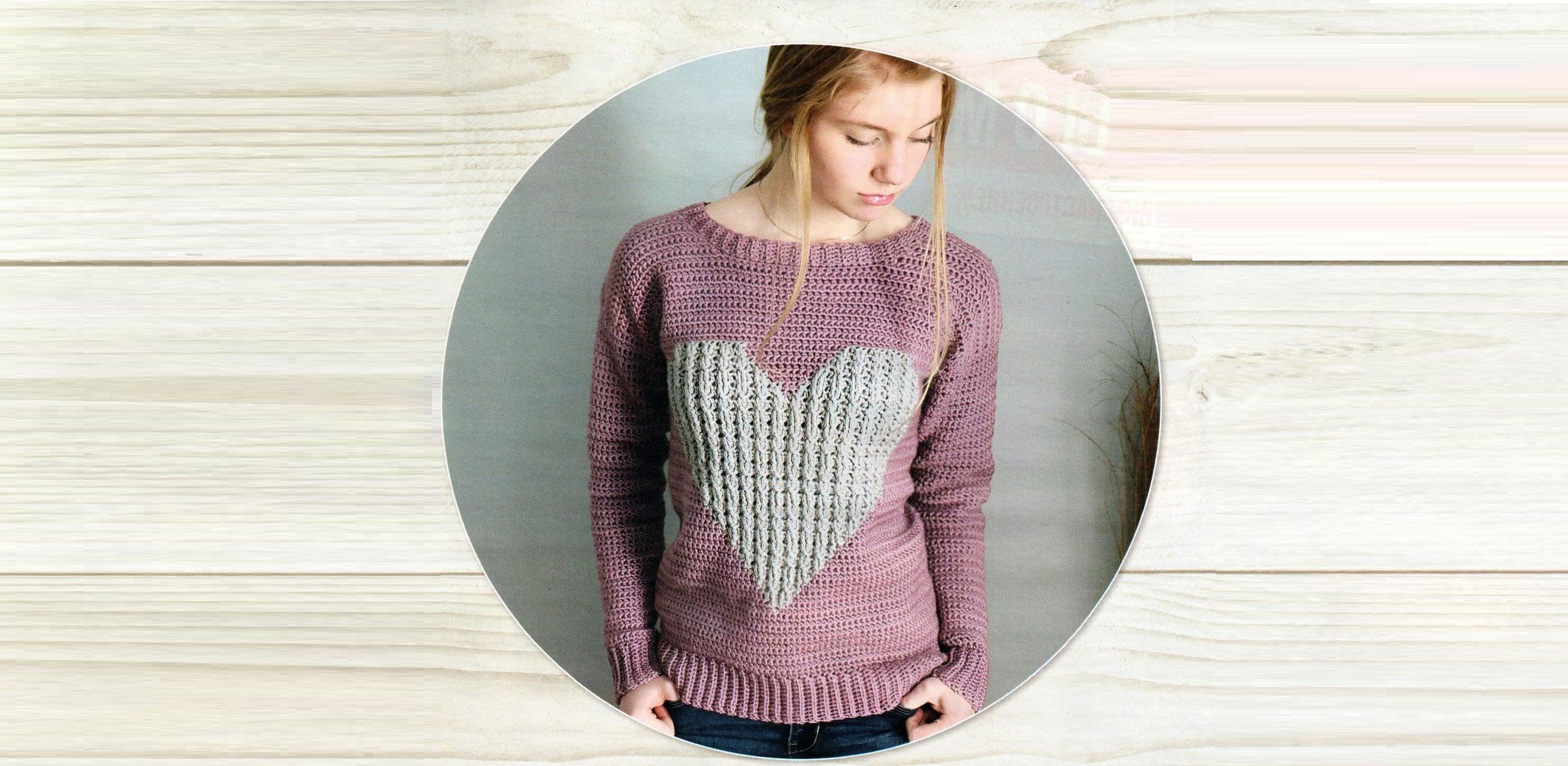 Рельефное сердце на гладком полотне джемпера связано в технике интарсии. Миксуем цвета и узоры.