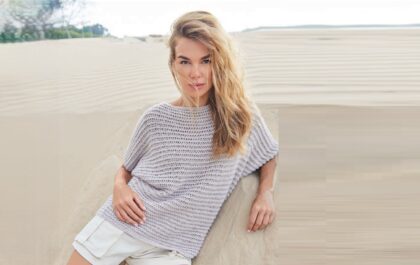 300 (350) 350 г пряжи цв. пудры «365 Cаshmеrе» (77% хлопка, 15% кашемира, 8% полиамида; 175 м/50 г); крючок № 4.