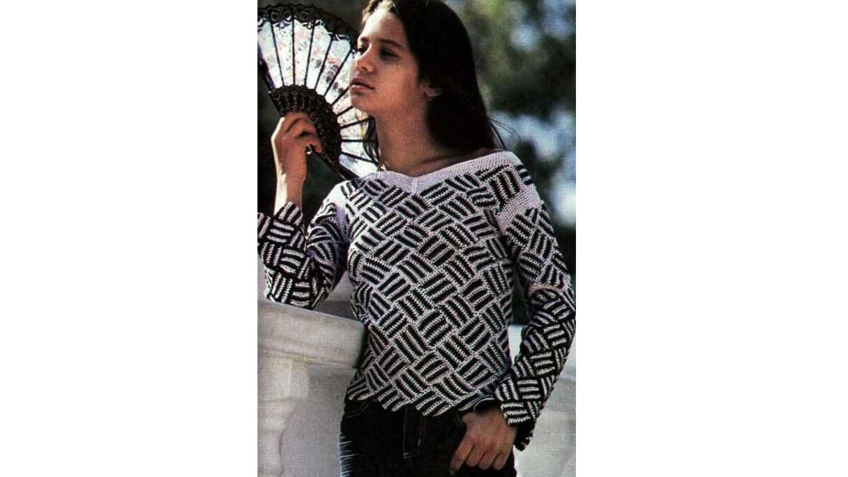 Рукава: связать 56 квадратов и 2 треугольника с указанной последовательности. Соединить мотивы по выкройке.