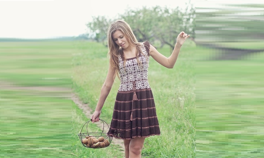 Провязав таким образом юбку и закончив ее, я обшила серединку каждого мотива топа темно-коричневыми нитками, чтобы избежать явного “светлого куска” платья.