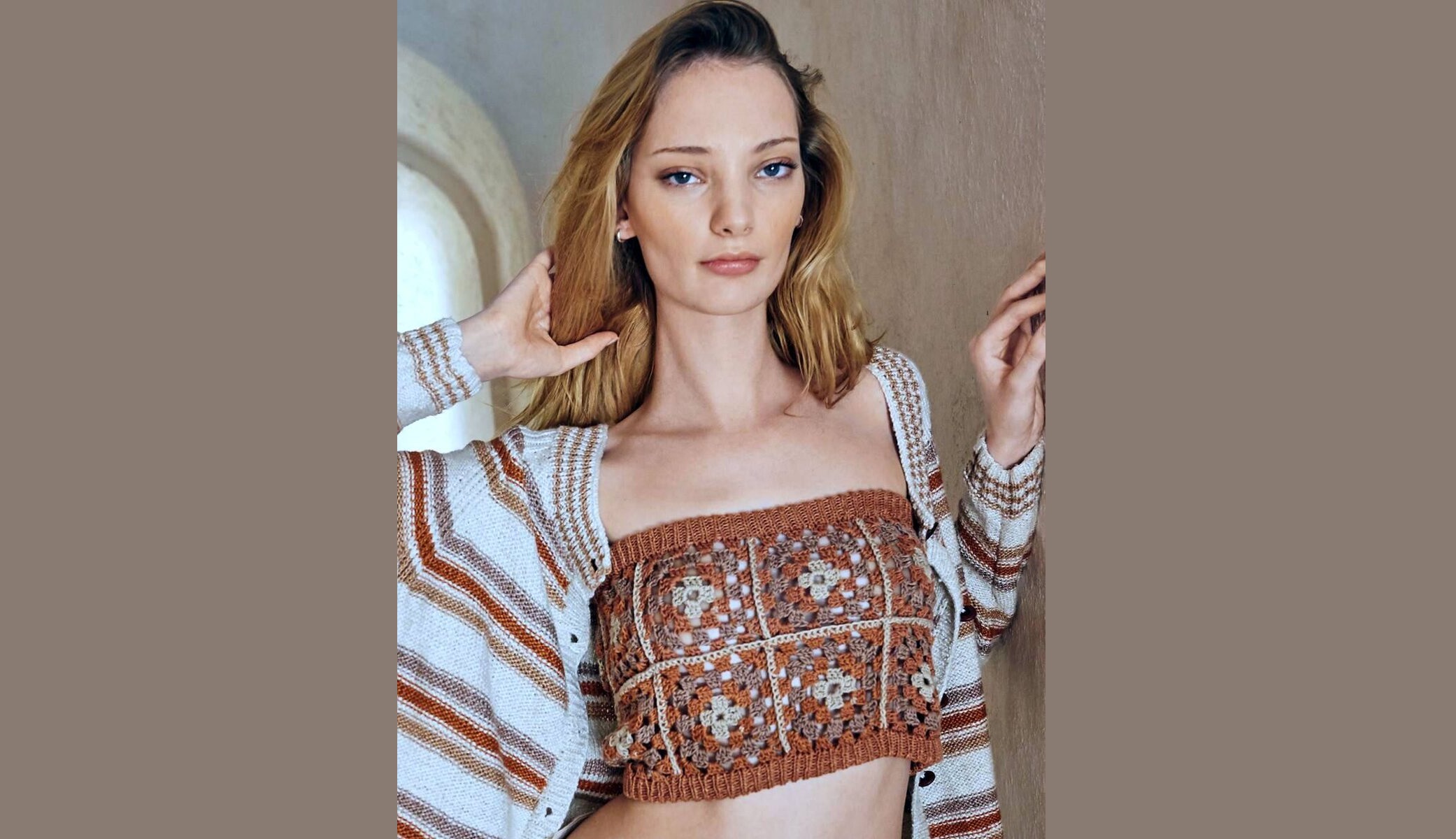 Стильное бандо – идеальный выбор для лета. Все, что вам нужно, это связать двадцать «бабушкиных квадратов» и соединить их вместе. Затем выполнить на спицах планки в резинку отвернуть, пришить их и вдеть в кулиски эластичную ленту, чтобы бандо держалось на месте