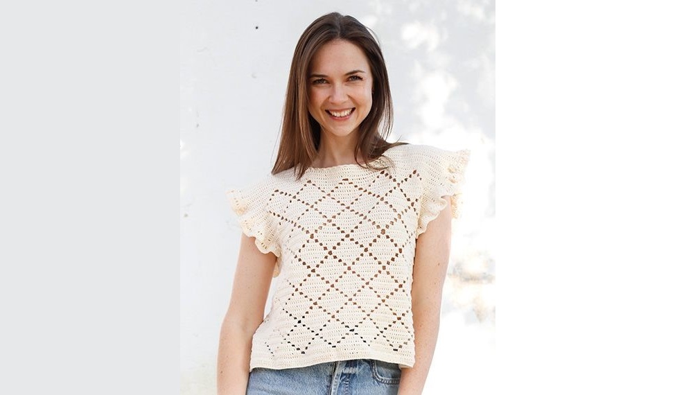 Провяжите 1 столбик без накида в первом ряду после пропущенных петель в нижней части проймы спинки, * провяжите 2 воздушные петли, 1 столбик без накида вокруг следующего ряда *, вяжите от *-* вокруг проймы до места, где петли были пропущены на передней части (убедитесь, что край не тугой; при необходимости вы можете провязать дополнительную воздушную петлю между каждым столбиком без накида). Вяжите А.4 туда и обратно. Когда A.4 будет выполнен в высоту, обрежьте прядь. Таким же образом вяжите другой край рукава.