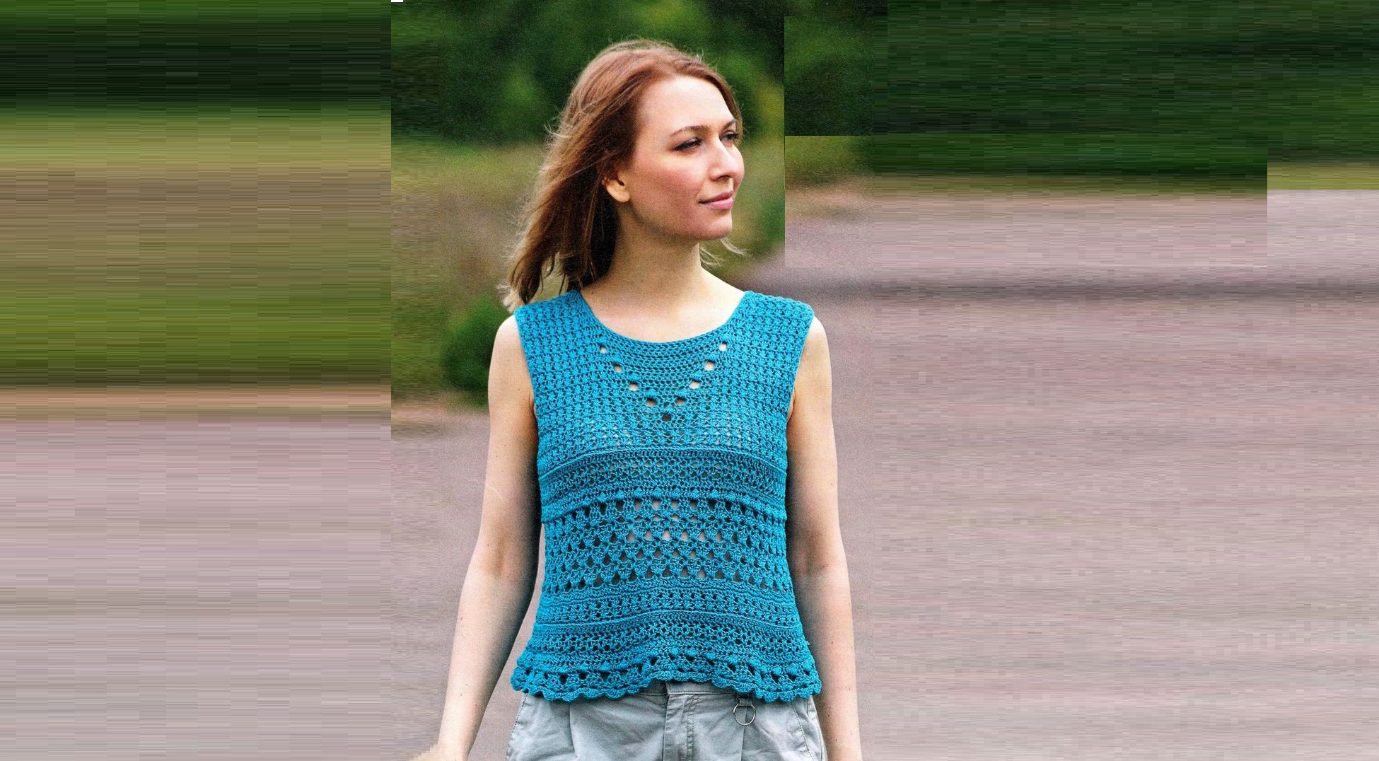 Волнистый узор на этом топе напоминает волны, треугольник по центру – нос яхты, ну а цвет говорит сам за себя. Отпуск продолжается!