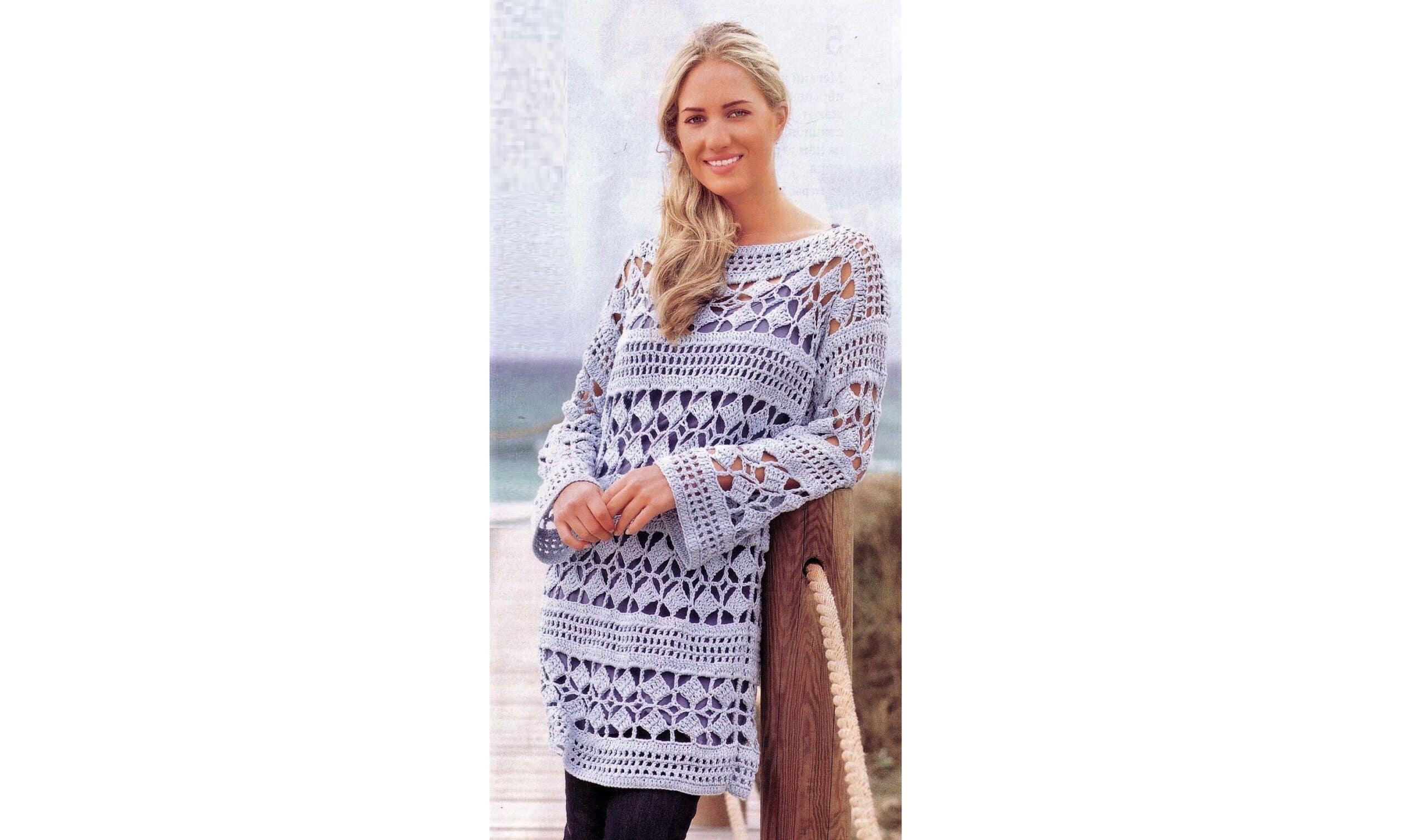 Сборка: выполнить плечевые швы с обеих сторон на 12 (14) 16 см. Втачать рукава, выполнить боковые швы и швы рукавов.