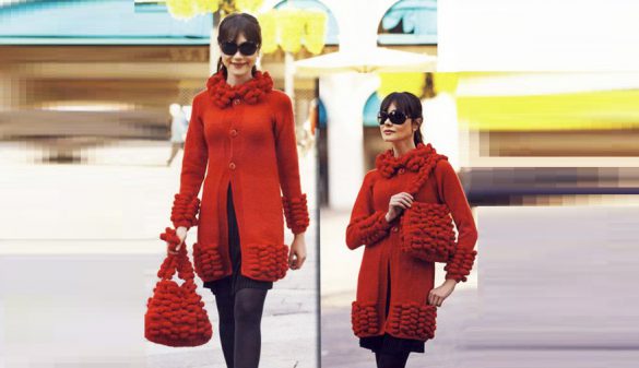 A rich red coat complete with a bag is exclusively for brave and self-confident ladies.