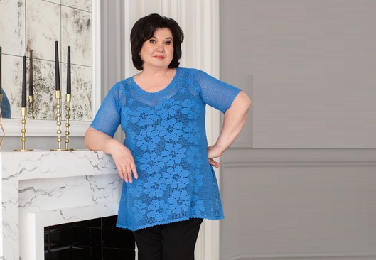 Summer is very soon and it's time to knit openwork dresses and tunics. The sky blue color perfectly highlights the beauty of fillet lace.