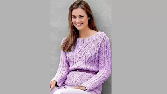 Пуловер с аранами демонстрирует уникальный мотив из кос на фоне глади и резинки.