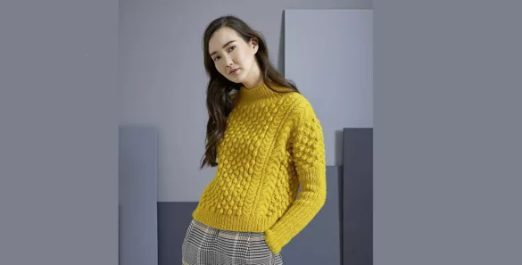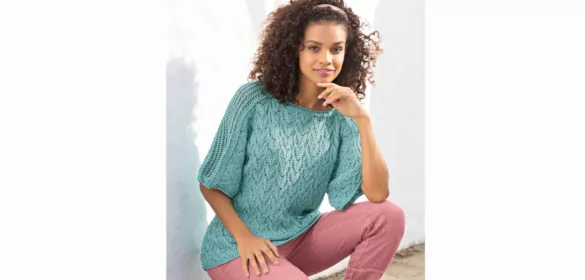 Пуловер с воздушным сетчатым узором подходит абсолютно ко всему. Свободный, короткий, с широким вырезом горловины и рукавами реглан до локтя – он останется с вами до самого лета.