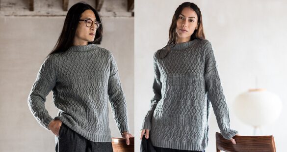 Сквозные дорожки по краям и линиям реглана придают этому несложному в исполнении пуловеру очаровательную ноту, но в то же время объемная хлопковая пряжа с твидовым эффектом делает его прочным и немного брутальным.
