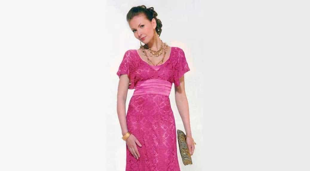 To expand the skirt of an openwork knitted dress, use wedges, knitted separately according to the given sample and sewn in with a needle.